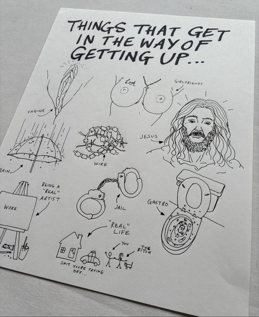 Lushsux - Zine Drawing #39 (Things That Get In The Way Of Getting Up)