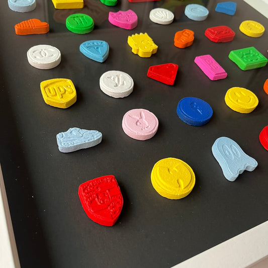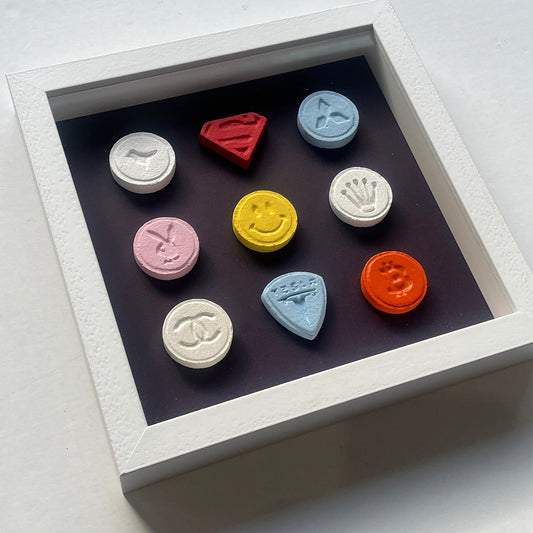 Dean Zeus Colman - 9 Pills (Purple Background - Framed in White)