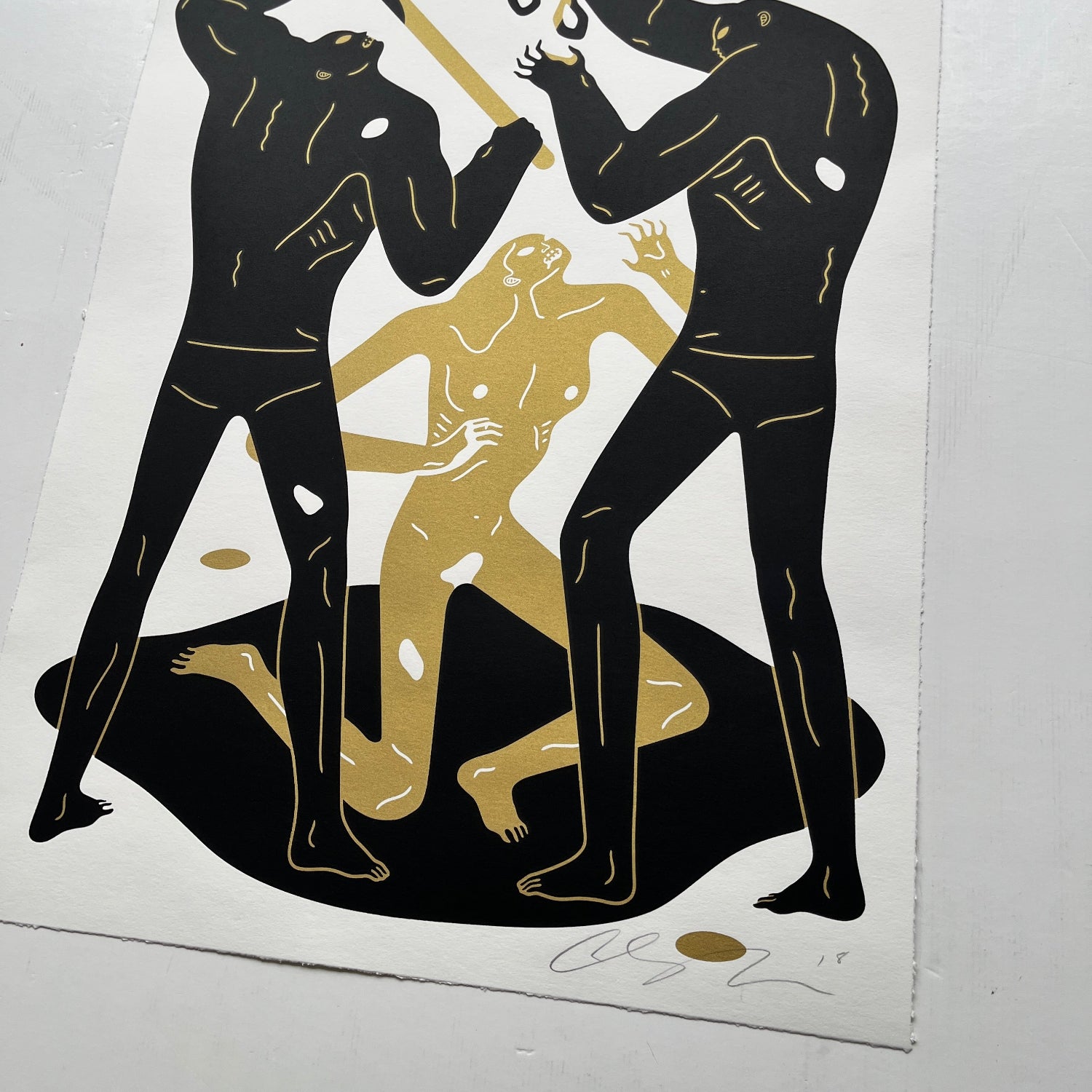 18 x 24" hand pulled black and gold screen print