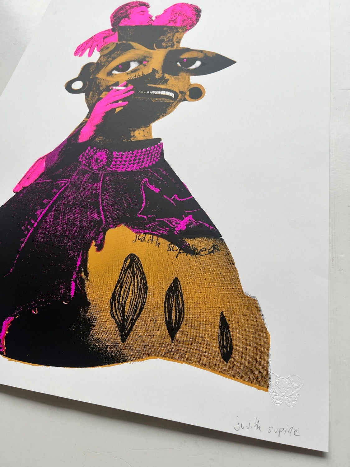 3 Color Screenprint, Printed on Cougar Cover 80lb. Archival Paper.
