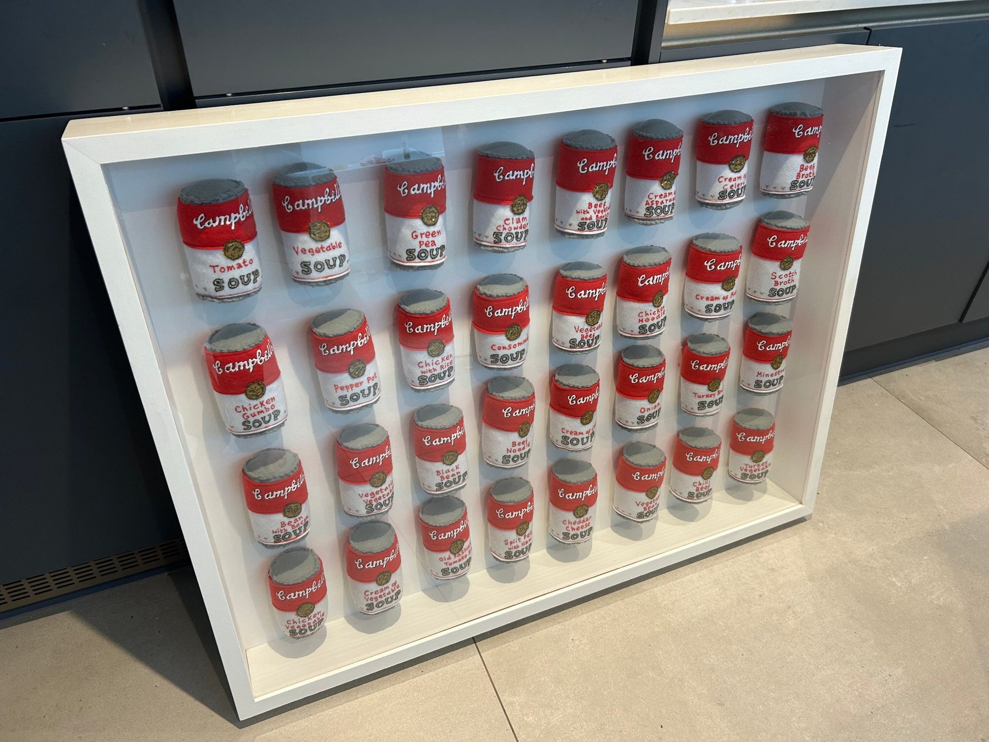 Consists of 32 Campbell's Soup Cans in a deep custom frame