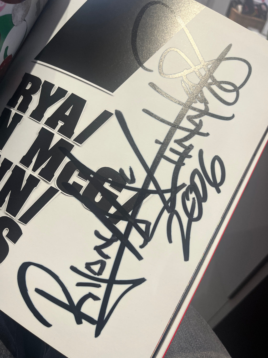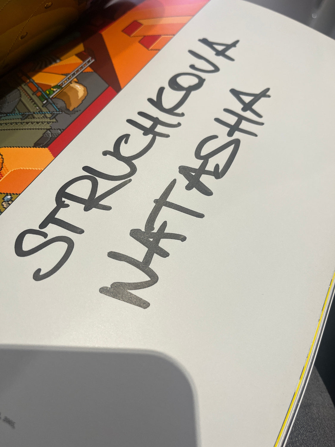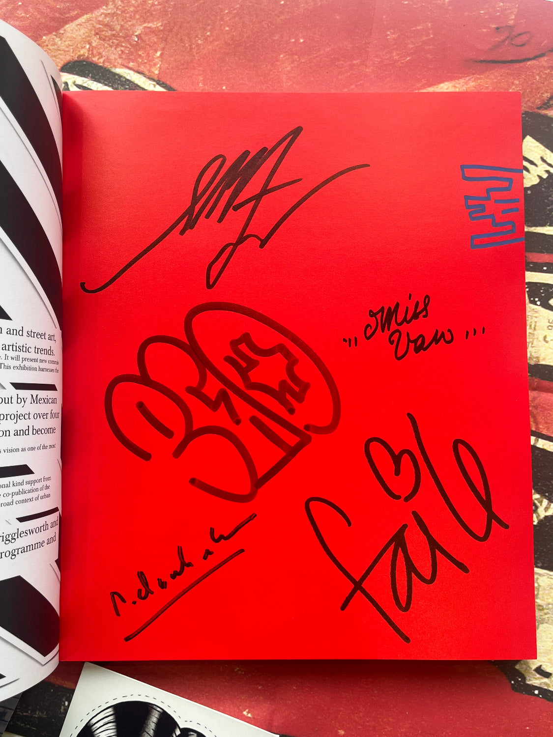 The book is signed by, among others, David Shrigley, Invader, Shepard Fairey, Faile, Kozyndan, Miss Van & Ryan McGuinness.