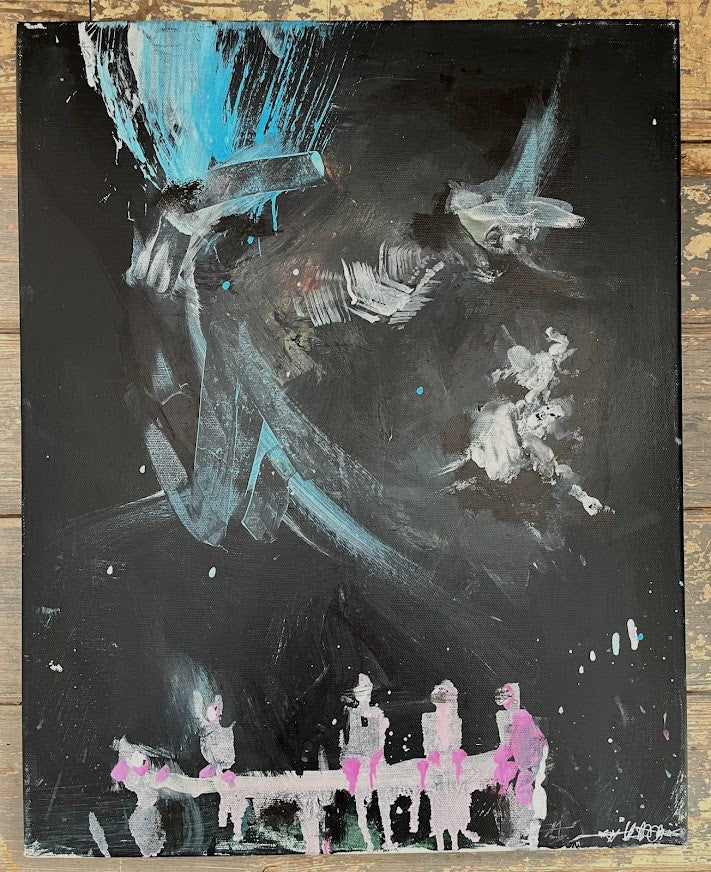 Spray, acrylic, oil, pen & pencil on canvas