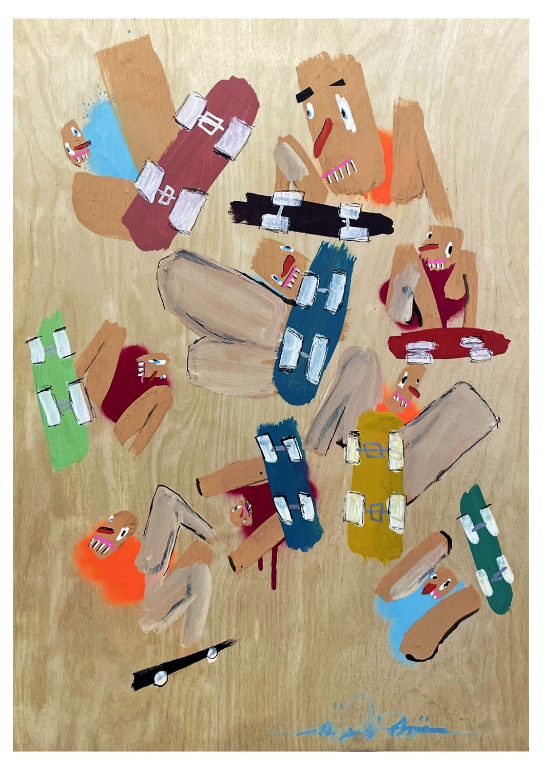 Spray paint, acrylic, paint pen and skateboard grip tape!