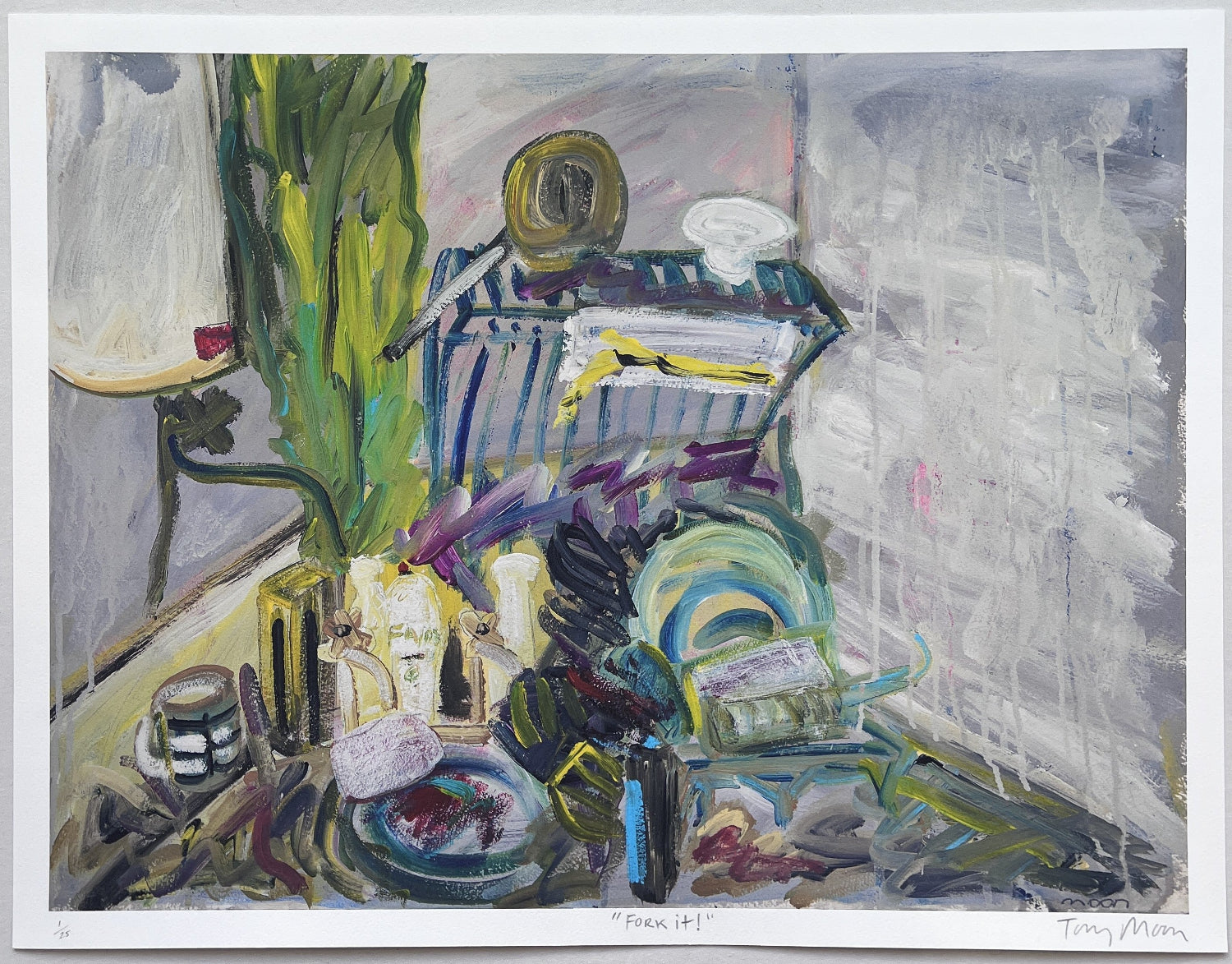 Inspired by the famous washing up scene in Withnail And I, this is Tony Moon's impressionistic interpretation of the overflowing stresses of modern day life!