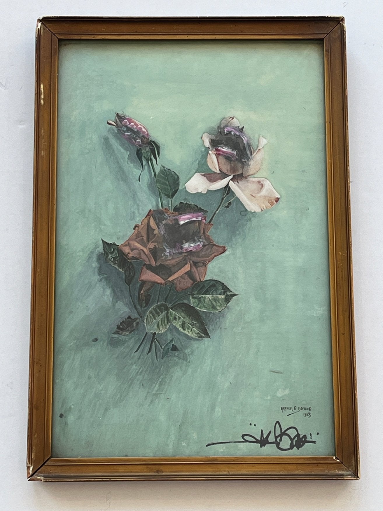Acrylic on vintage painting, framed & ready to hang.