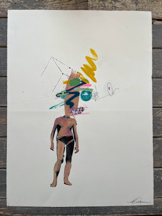 Original paint, spraypaint & pen painting on paper